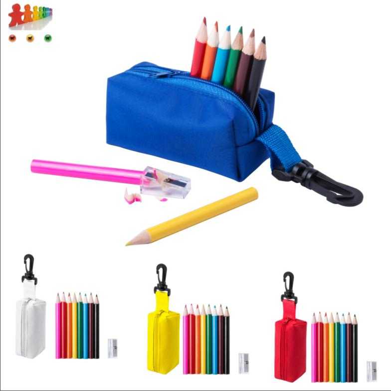 Set matite colorate con 8 matite di legno e temperamatite. In custodia con zip. In poliestere 420D.