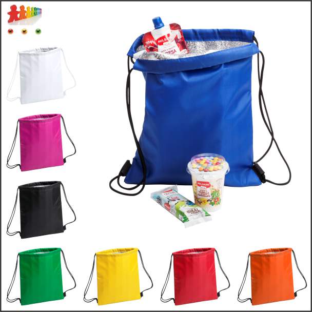 | Descrizione | Sacca termica per bambini con chiusura a coulisse ed imbottitura in alluminio. Poliestere 210D. |