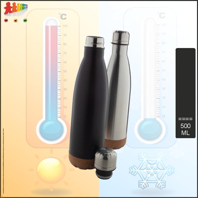 Bottiglia in acciaio inox doppia parete con base in sughero, 500 ml. |