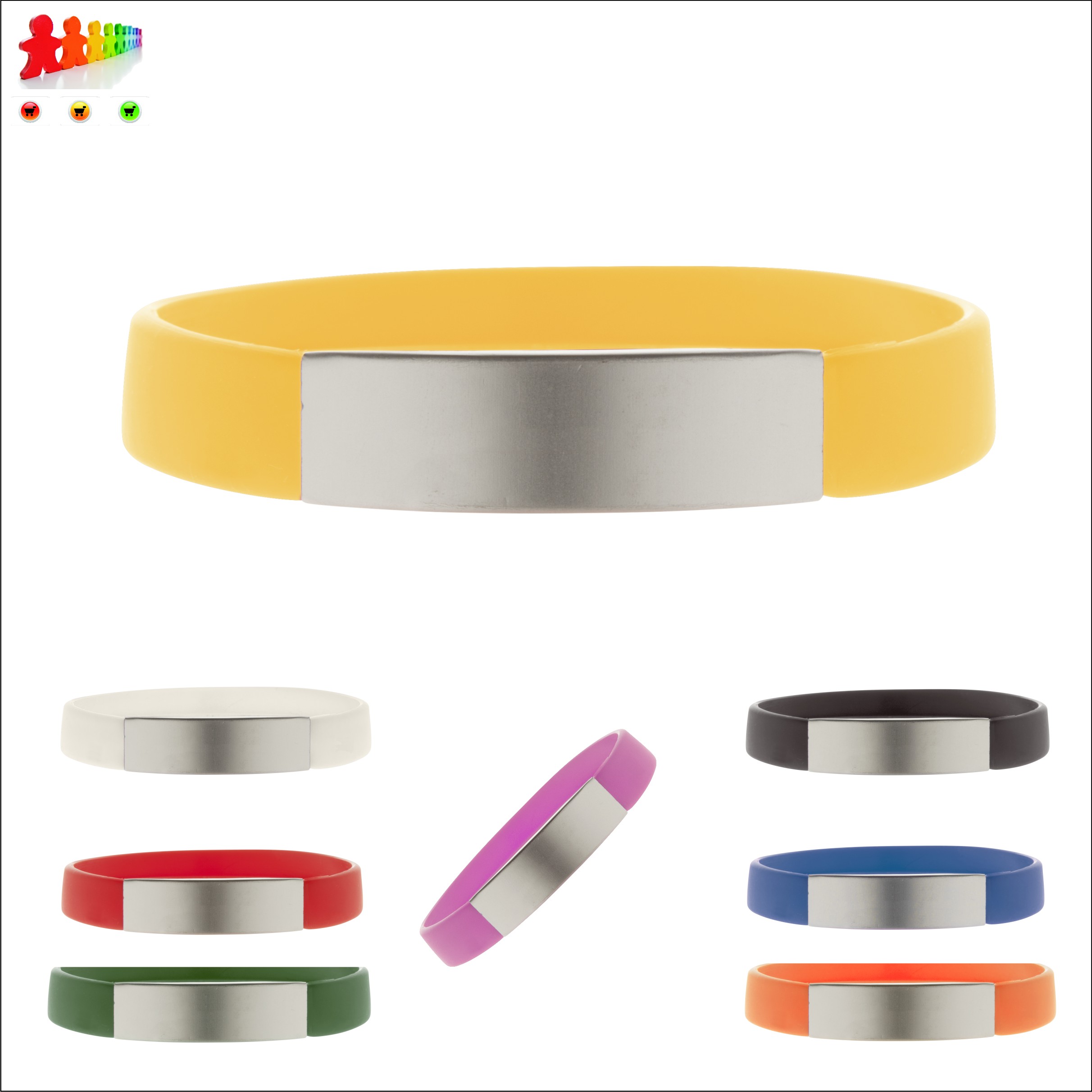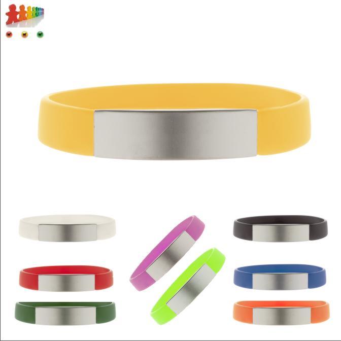 Product description:tab K086775-Braccialetto in silicone con piastrina in alluminio argentatopar