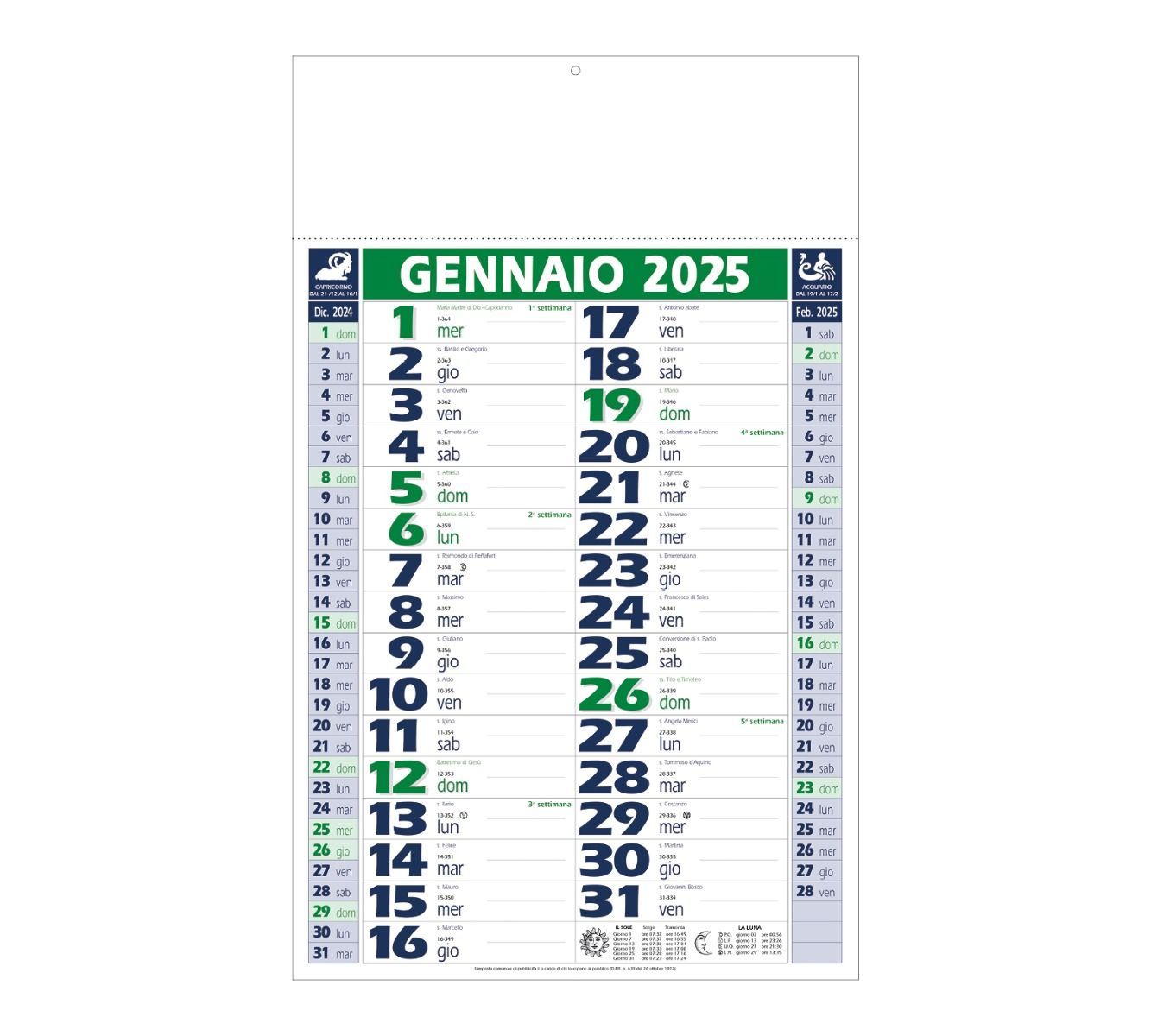 Calendario Olandese verde e blu