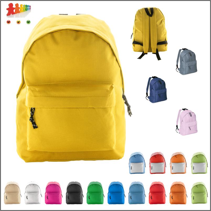 | Descrizione | Zaino con tasca frontale e cerniera, schienale imbottito e spallacci. Poliestere 600D. |