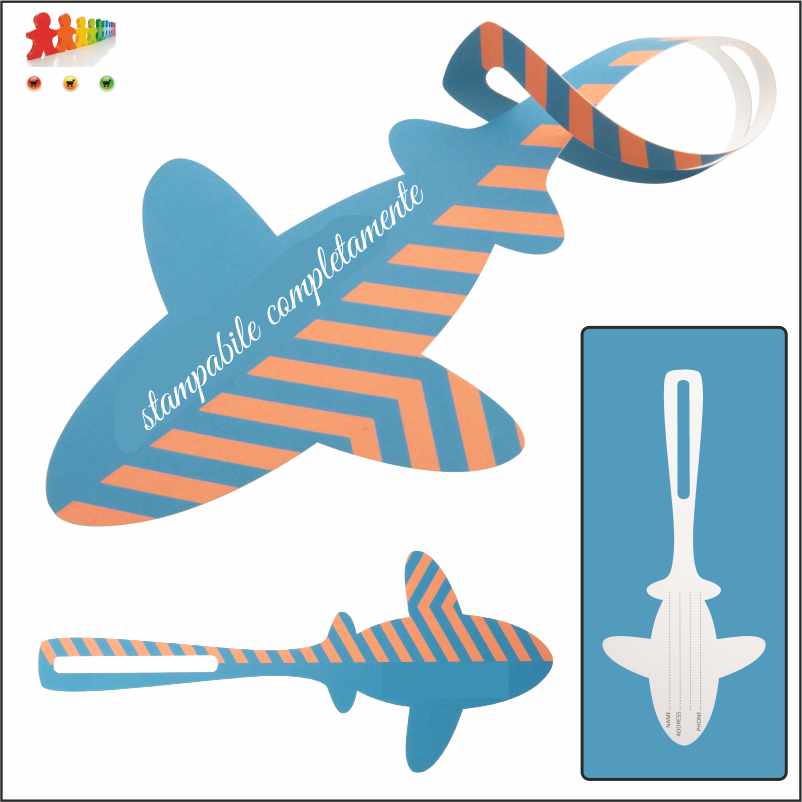 Etichetta bagaglio a forma di aereo stampabile completamente in quadricromia