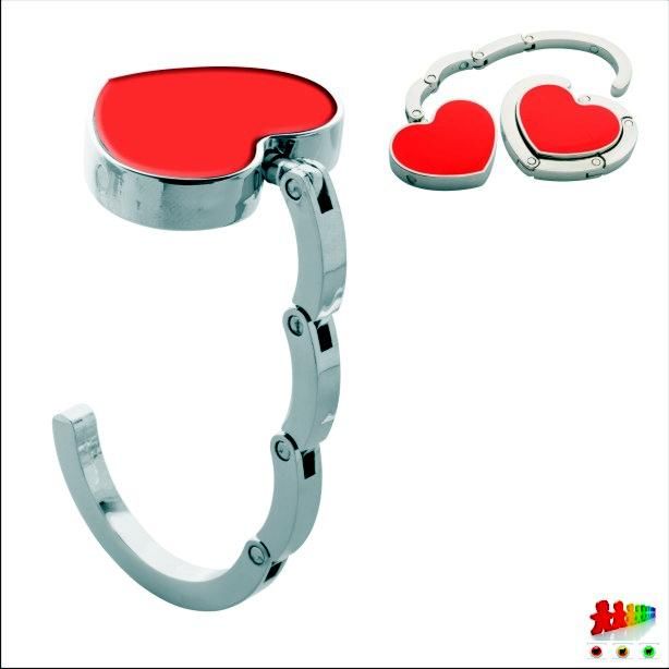 Gancio borsa in metallo a forma di cuore, con chiusura a magnete. Fornito in con