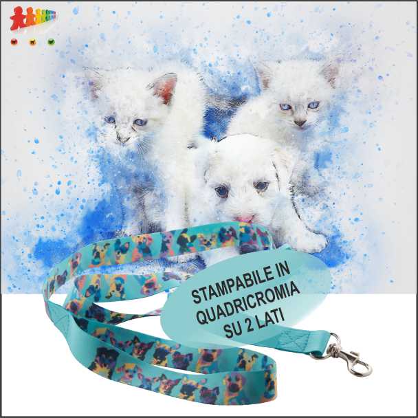 Guinzaglio in poliestere con moschettone in metallo. Con stampa a sublimazione su 2 lati. Ordine minimo 50pz. Fatta su richiesta.