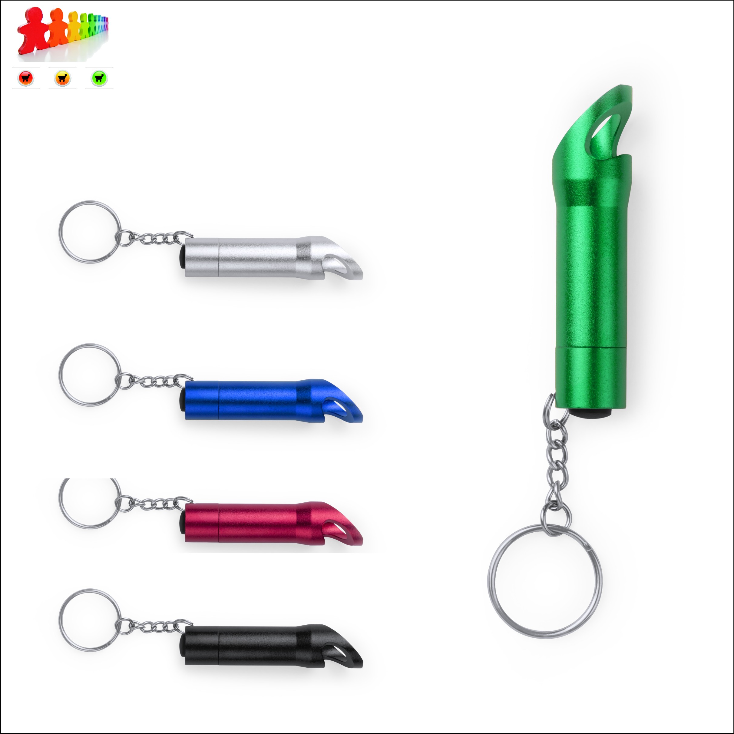 Product description:tab K086827-Mini torcf1 if0 a in alluminio a 3 LED, con apribottiglie e portachiavi,f1 fornita con pile (a pastiglia)f0par