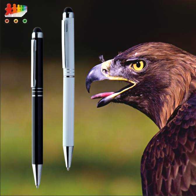 Penna a sfera in alluminio con touch screen. Con refill blu.