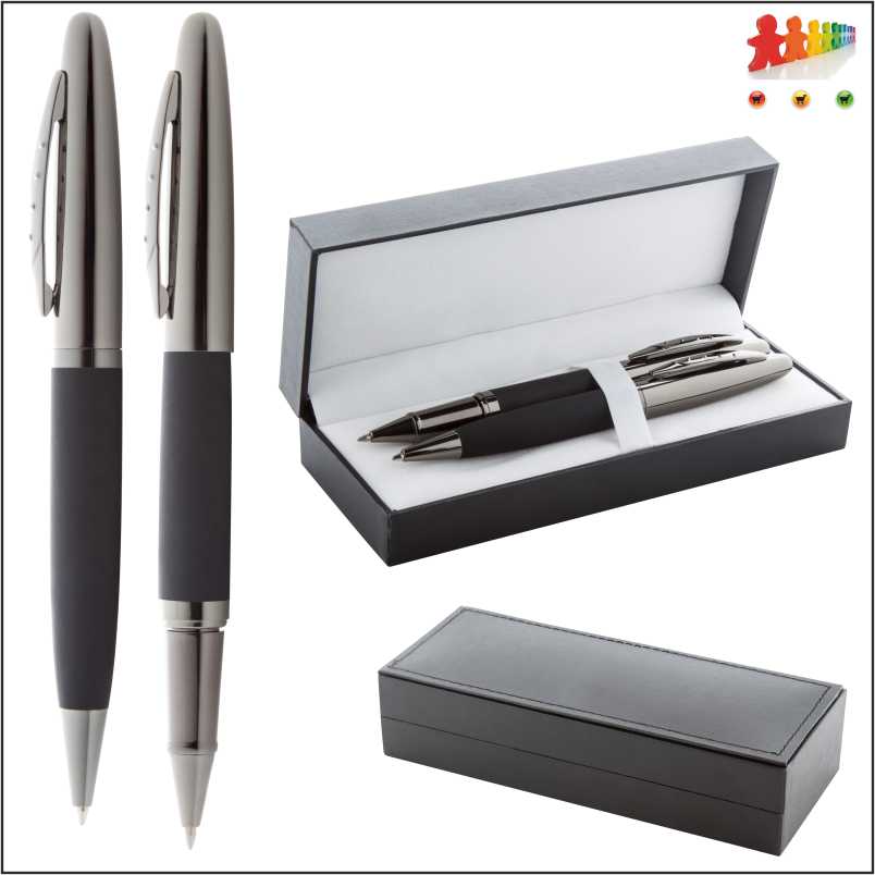viewkind4uc1pardcf1lang1040f0fs16 Product description:tab Elegante, penna a sfera in metallo e penna roller con superficie gommato. In confezione regalo nera con refill blu.par