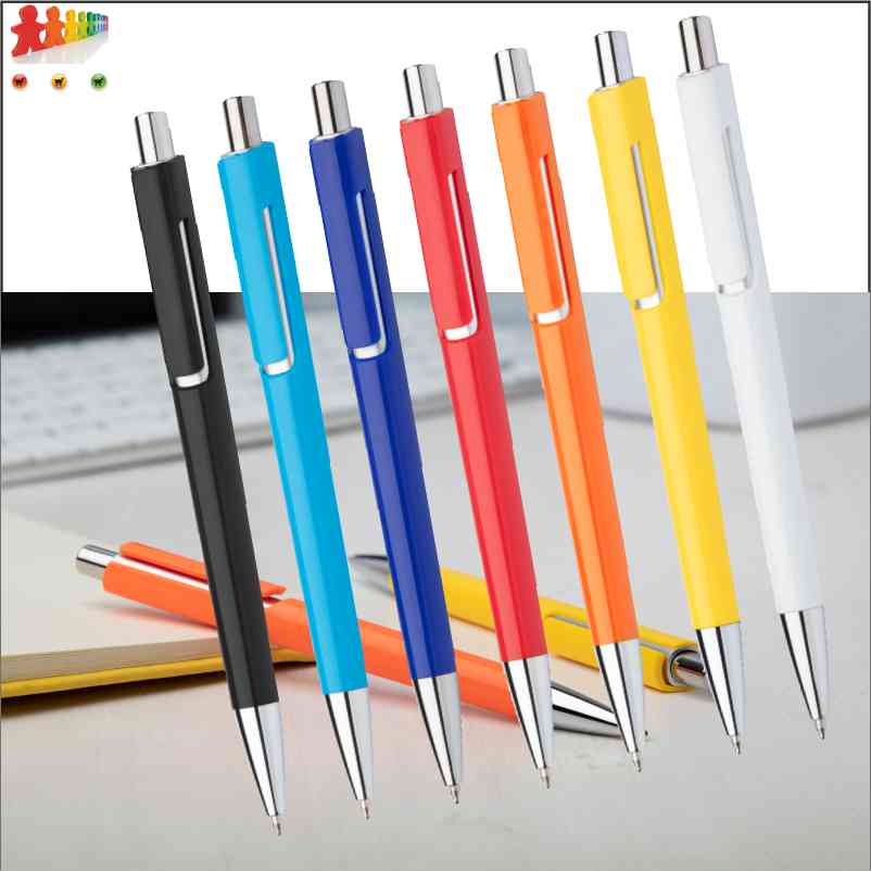 Penna a sfera in plastica con corpo colorato e parti cromate. Fornita con refill blu. |