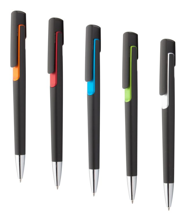 Penna a sfera nera con particolari colorati |