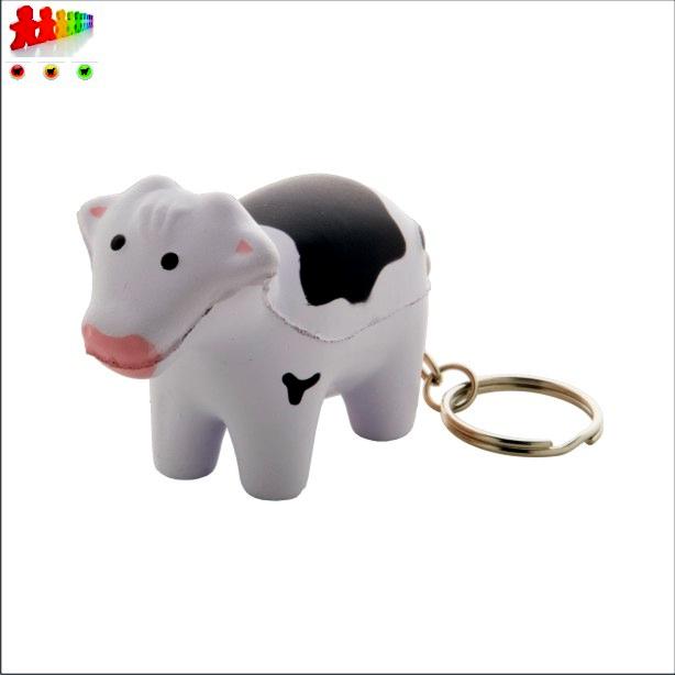 Pallina antistress a forma di mucca con portachiavi in metallo.