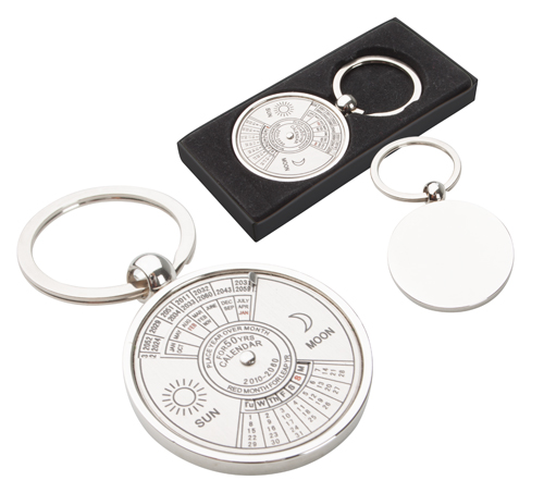 viewkind4uc1pardcf1lang1040f0fs16 Product description:tab Portachiave di forma rotonda in metallo con calendario perpetuo ruotabile fino al 2060. Spedito in un contenitore di cartone nero.par