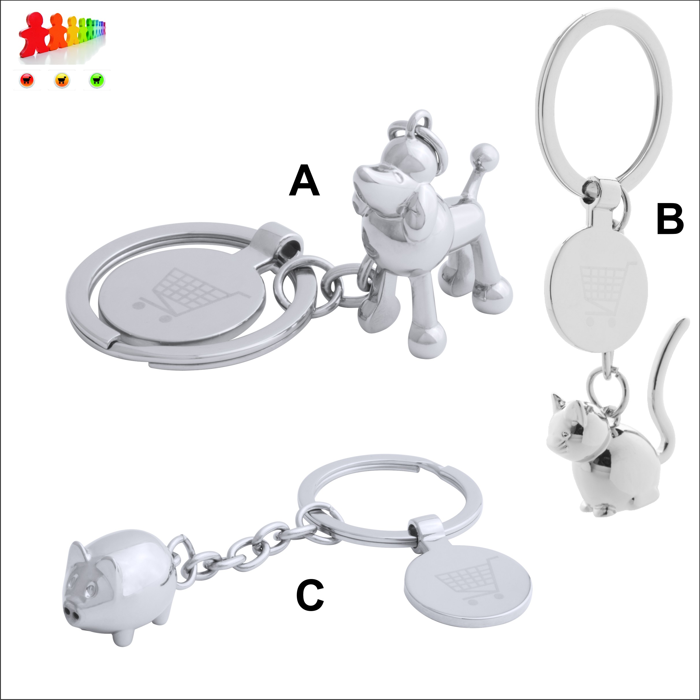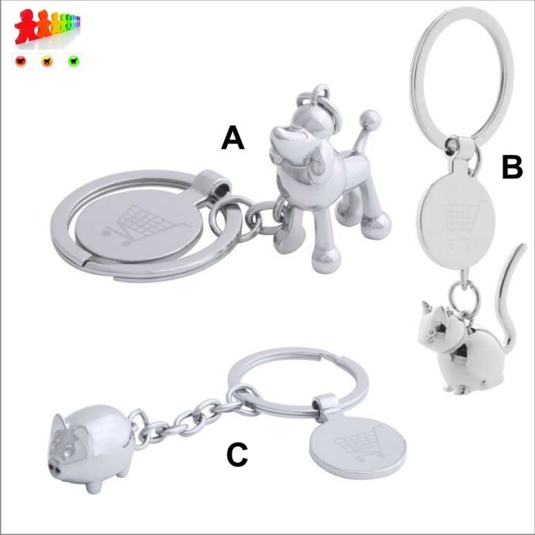 Product description:tab K086832-Portachiavi in metallo a forma di animale c/gettone carrello spesapar