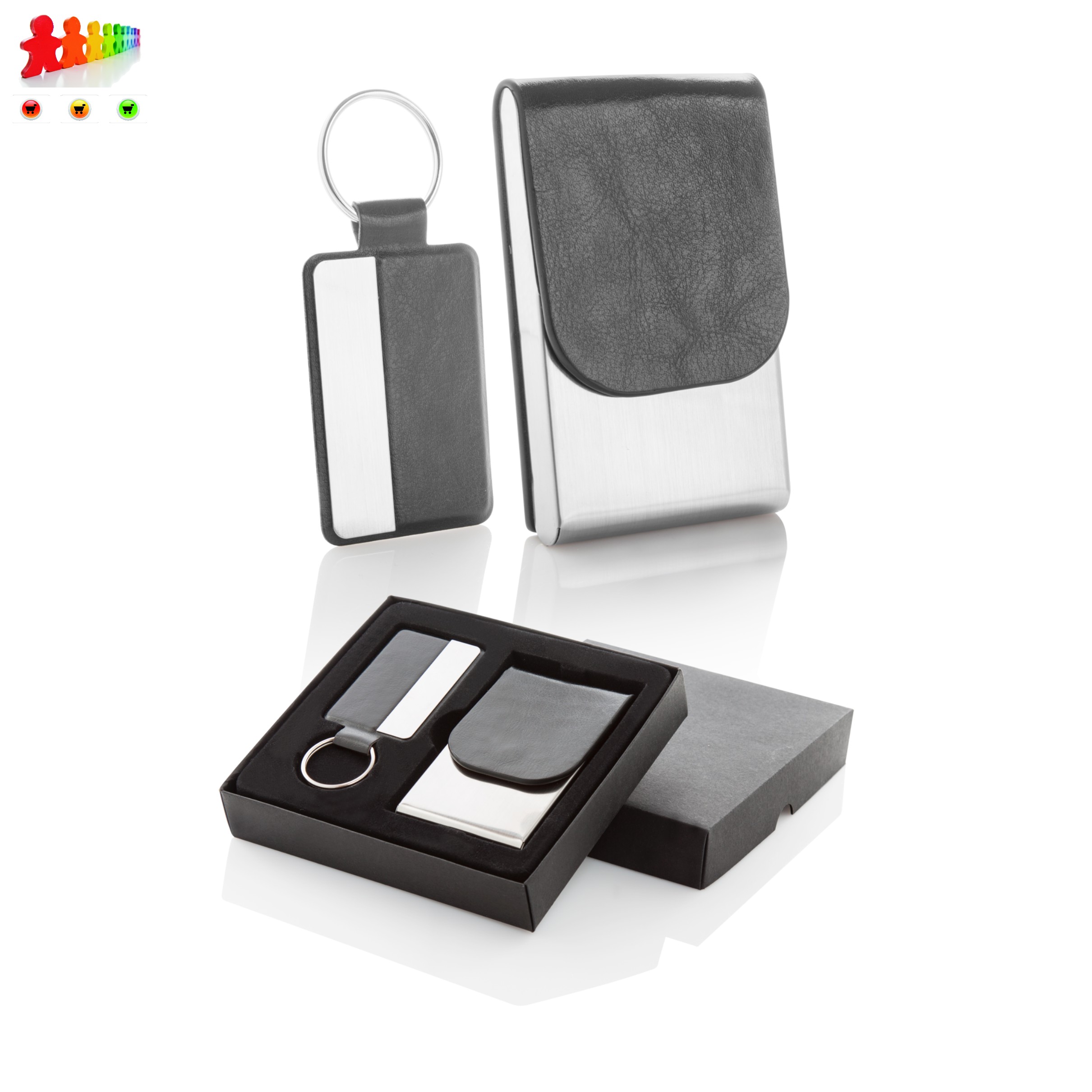 viewkind4uc1pardcf1lang1040f0fs16 Product description:tab Copertura in similpelle e metallo spazzolato di portabiglietti da visita e set portachiavi in confezione regalo nera.par