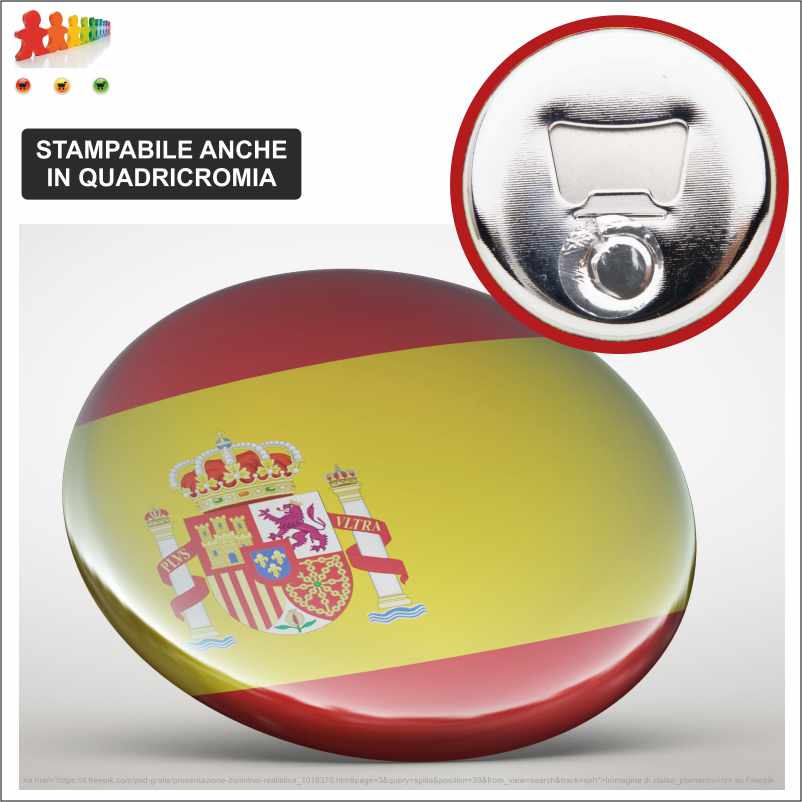 | Descrizione | Spilla con apribottiglie, stampabile in quadricromia. |