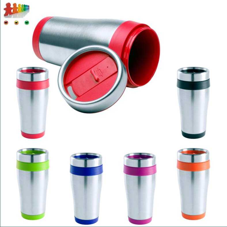 Thermo tazza a doppia parete in acciao INOX con delle parti in plastica colorata, in scatola regalo. 450 ml.