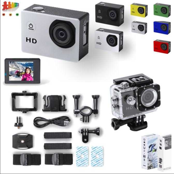 Product description:tab Videocamera sportiva in plastica con risoluzione 720p HD, schermo 2″ LCD e batteria ricaricabile. Comprensiva di 10 accessori e cavo di ricarica USB.par