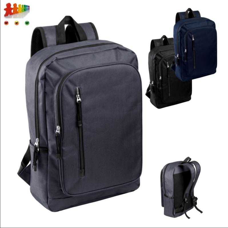 Zaino con pi? scomparti con zip, tasca imbottita per laptop e tracolla regolabile. In poliestere 600D.